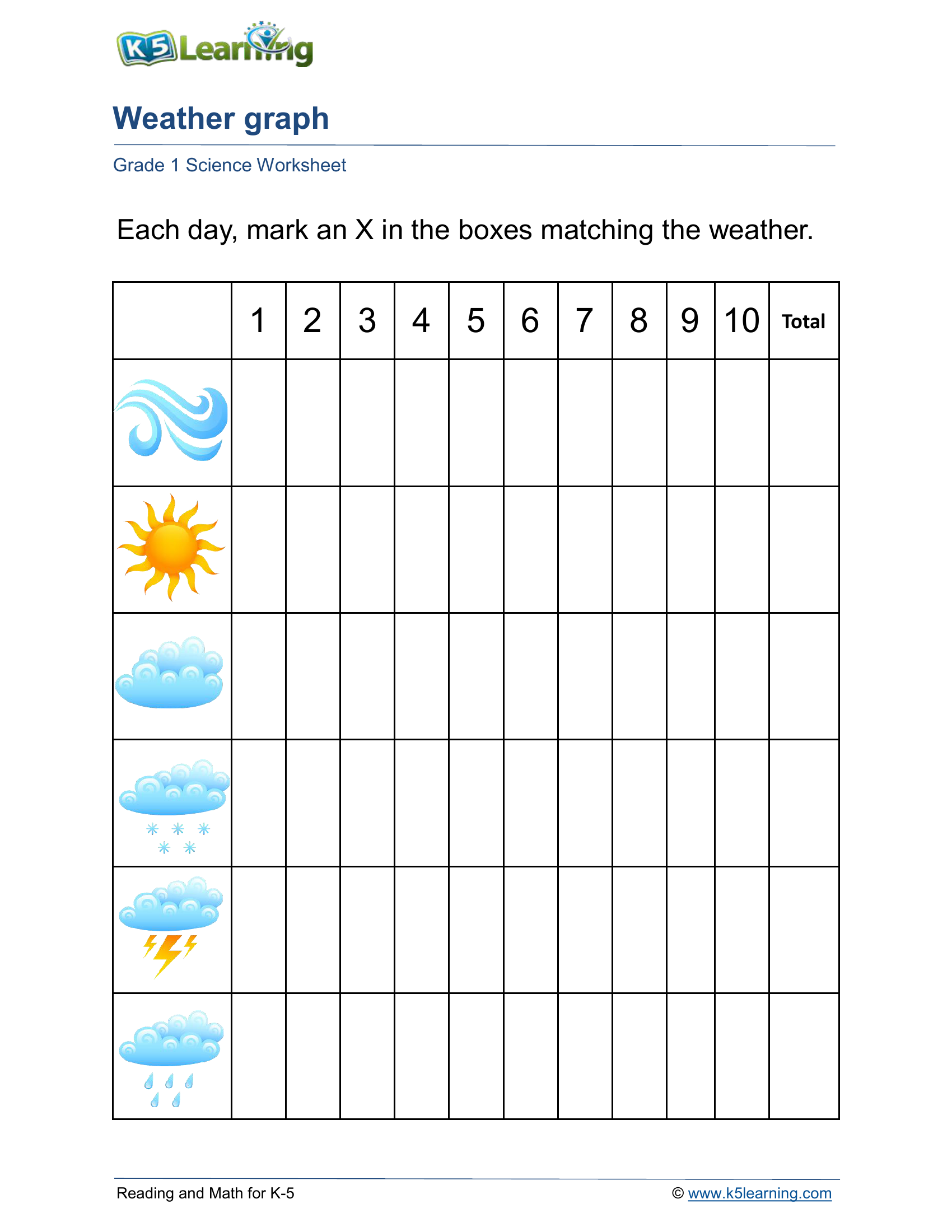 Weather math worksheets k5. › science › weather-seasonsWeather and Seasons - Kindergarten Worksheets | K5 Learning Create a weather wheel: Predict the weather Predict and draw the weather: Seasons: The 4 seasons Learn the 4 seasons: fall, summer, winter and spring: Words for seasons Match the season to activities and conditions: Seasonal stuff Circle the seasonal clothes, items or activities. Seasons and months Match the seasons to the months of the year ... › free-math-worksheets › third3rd Grade Math Worksheets: Measurement | K5 Learning Free 3rd grade measurement worksheets, including units of length, weight, volume and temperature, measuring lengths and reading a scale, measuring cup or a thermometer. Both customary units and the metric system are considered, No login required. › science-worksheets › first-grade-1Grade 1 Science Worksheets | K5 Learning Science worksheets for grade 1. Our grade 1 science worksheets introduce concepts related to life sciences (plants, animals and our bodies), earth science (weather, the environment and patterns of the earth sun and moon) and the physical sciences (forces and motion, energy, sound and light, properties of materials and simple machines). › science-worksheets › secondWeather Worksheets | K5 Learning Reading & Math for K-5 ... chart and forecast the weather. Our grade 2 weather worksheets review vocabulary related to weather ... K5 Learning offers free worksheets, ...